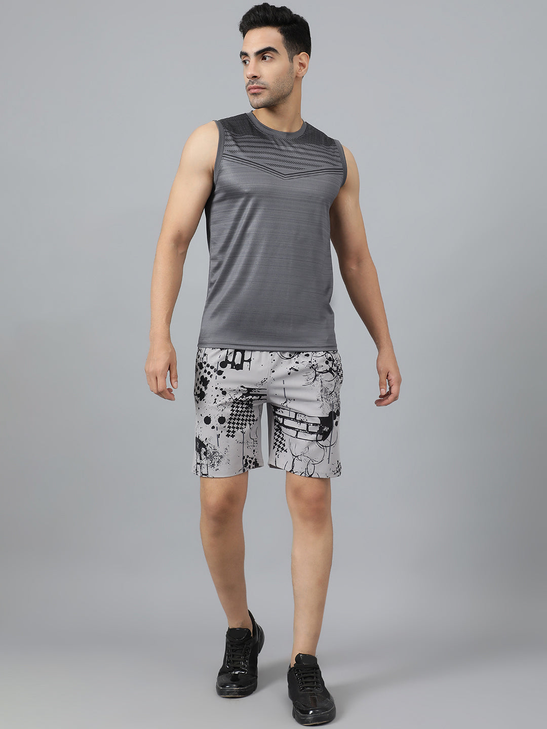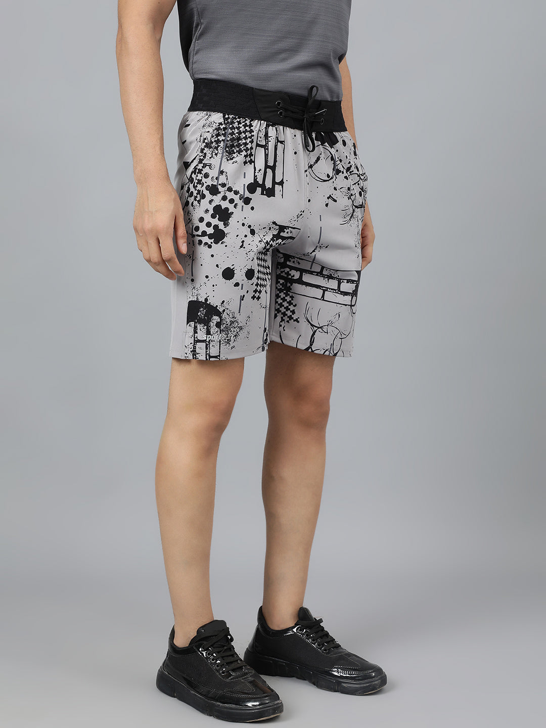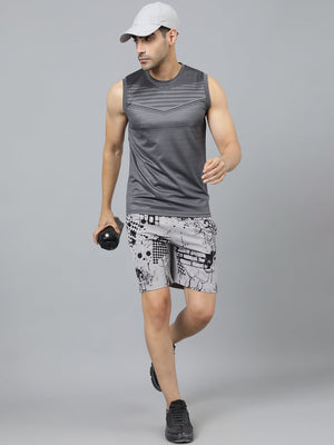 Sport Sun Light Grey Printed Men NS Lycra Shorts